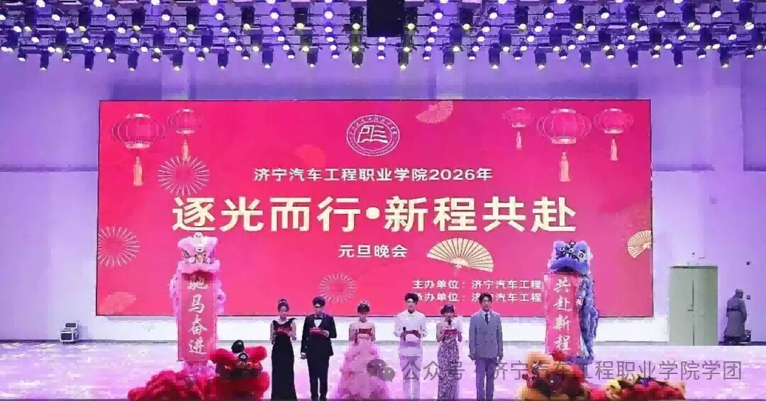 12月30日晚,济宁汽车工程职业学院2026年“逐光而行 新程共赴”——元旦晚会于我校报告厅盛大举行。学院领导与师生代表齐聚一堂,在璀璨灯光的映照下,现场掌声此起彼伏,大家共同携手迈向崭新的2026年。