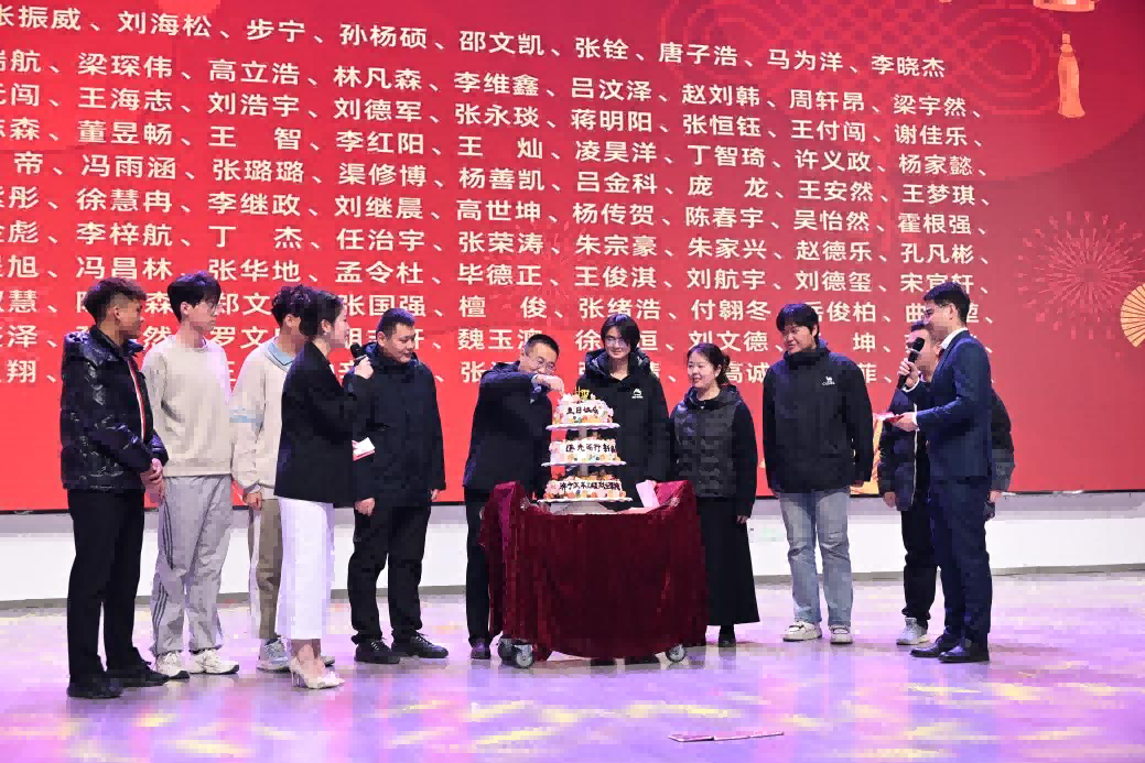 紧接着是温馨的“过生日”互动环节,伴随着由何书恒、 徐亚洁带来的生日祝福歌,蛋糕被缓缓推上舞台,12月与1月1日生日代表上台,全场共同庆祝生辰,暖意弥漫了整个报告厅,此次元旦晚会中的集体生日环节,不仅为寿星们带来了意外的惊喜,更让同学们在辞旧迎新的氛围中感受到了校园的关怀与集体的凝聚力。活动将新年的喜悦与生日的祝福相结合,既丰富了元旦晚会的内容,也彰显了我校 “以人为本、温馨育人” 的校园文化。