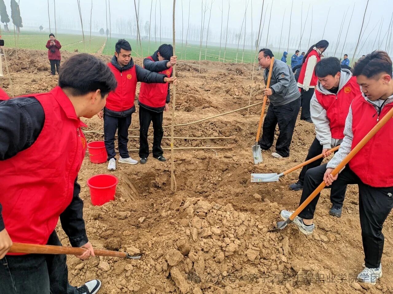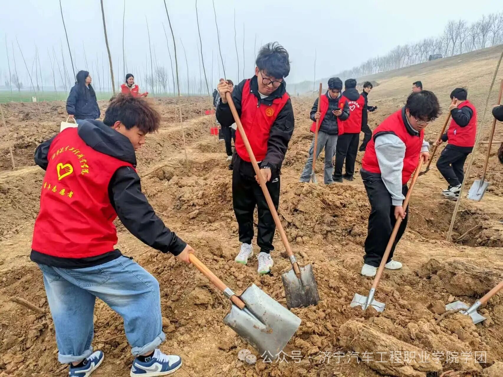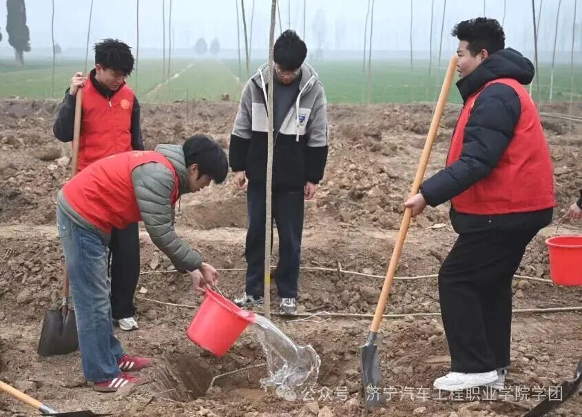 春风拂岸,新绿初绽。在第48个植树节到来之际,为深入践行黄河流域生态保护和高质量发展国家战略,落实“绿水青山就是金山银山”发展理念,济宁汽车工程职业学院团委联合共青团梁山县委,组织三十余名师生代表,共同前往济宁市梁山县黑虎庙镇黄河堤岸,开展“青春之城 活力济宁——我为黄河种棵树”主题植树活动,以青春之力守护母亲河,用实际行动彰显新时代青年的责任与担当。